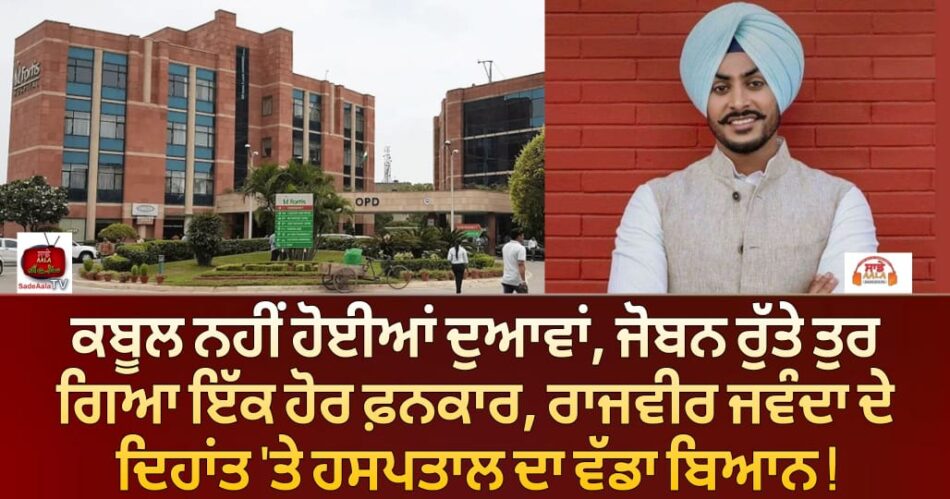 ਰਾਜਵੀਰ ਜਵੰਦਾ ਦੇ ਦਿਹਾਂਤ ਮਗਰੋਂ ਫੋਰਟਿਸ ਹਸਪਤਾਲ, ਮੋਹਾਲੀ ਵੱਲੋਂ ਵੀ ਮੀਡੀਆ ਸਟੇਟਮੈਂਟ ਜਾਰੀ ਕਰ ਦਿੱਤੀ ਗਈ ਹੈ। ਹਸਪਤਾਲ ਨੇ ਬਿਆਨ ‘ਚ ਕਿਹਾ ਕਿ ਪੰਜਾਬੀ ਗਾਇਕ ਰਾਜਵੀਰ ਜਵੰਦਾ ਦਾ 8 ਅਕਤੂਬਰ, 2025 ਨੂੰ ਸਵੇਰੇ 10:55 ਵਜੇ ਫੋਰਟਿਸ ਹਸਪਤਾਲ, ਮੋਹਾਲੀ ਵਿਖੇ ਦਿਹਾਂਤ ਹੋ ਗਿਆ ਹੈ। ਉਨ੍ਹਾਂ ਨੂੰ 27 ਸਤੰਬਰ, 2025 ਨੂੰ ਇੱਕ ਸੜਕ ਹਾਦਸੇ ਤੋਂ ਬਾਅਦ ਬਹੁਤ ਹੀ ਗੰਭੀਰ ਹਾਲਤ ਵਿੱਚ ਦਾਖਲ ਕਰਵਾਇਆ ਗਿਆ ਸੀ, ਜਿਸ ਵਿੱਚ ਰੀੜ੍ਹ ਦੀ ਹੱਡੀ ਦੀਆਂ ਗੰਭੀਰ ਸੱਟਾਂ ਅਤੇ ਦਿਮਾਗ ਨੂੰ ਨੁਕਸਾਨ ਪਹੁੰਚਿਆ ਸੀ।