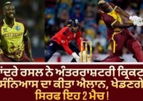 ਆਂਦਰੇ ਰਸਲ ਨੇ ਅੰਤਰਰਾਸ਼ਟਰੀ ਕ੍ਰਿਕਟ ਤੋਂ ਸੰਨਿਆਸ ਦਾ ਕੀਤ ..