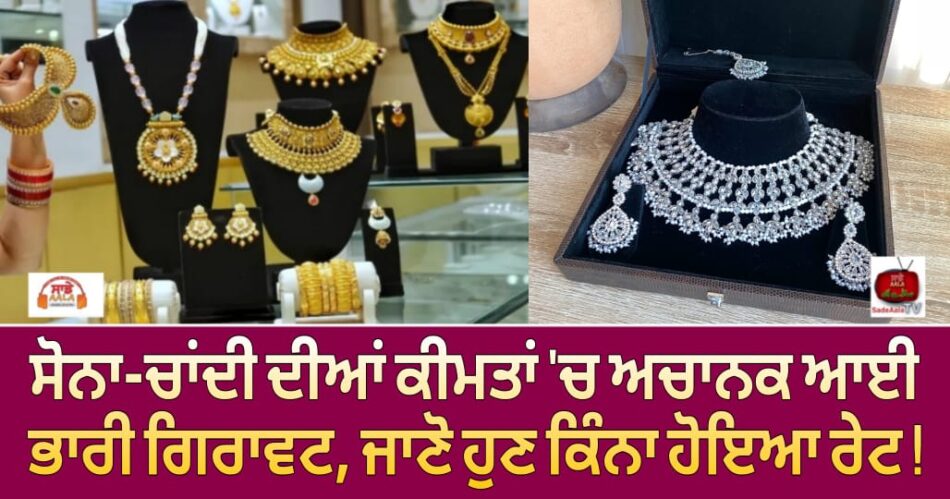 ਭਾਰਤ ‘ਚ ਸ਼ੁੱਕਰਵਾਰ ਸ਼ਾਮ ਨੂੰ ਸੋਨੇ ਅਤੇ ਚਾਂਦੀ ਦੀਆਂ ਕੀਮਤਾਂ ਵਿੱਚ ਤੇਜ਼ੀ ਨਾਲ ਗਿਰਾਵਟ ਆਈ ਹੈ। ਸ਼ੁੱਕਰਵਾਰ ਸਵੇਰ ਦੇ ਮੁਕਾਬਲੇ ਸ਼ਾਮ ਚਾਂਨੂੰ ਦੀ ਅਤੇ ਸੋਨੇ ਦੀਆਂ ਕੀਮਤਾਂ ਵਿੱਚ ਹੋਰ ਗਿਰਾਵਟ ਆਈ ਹੈ। ਸੋਨਾ ਅਤੇ ਚਾਂਦੀ ਵਿਸ਼ਵ ਪੱਧਰ ‘ਤੇ ਅਤੇ ਏਸ਼ੀਆਈ ਬਾਜ਼ਾਰਾਂ ਵਿੱਚ ਵੀ ਹੇਠਾਂ ਕਾਰੋਬਾਰ ਕਰ ਰਹੇ ਹਨ। ਇੰਡੀਅਨ ਬੁਲੀਅਨ ਐਂਡ ਜਿਊਲਰੀ ਐਸੋਸੀਏਸ਼ਨ (IBJA) ਦੇ ਅਨੁਸਾਰ, 24 ਅਕਤੂਬਰ ਨੂੰ ਸ਼ਾਮ 5 ਵਜੇ, 24-ਕੈਰੇਟ ਸੋਨੇ ਦੀ ਕੀਮਤ ਕੱਲ੍ਹ ਸ਼ਾਮ ਦੇ ਮੁਕਾਬਲੇ ਲਗਭਗ ₹2,000 ਡਿੱਗ ਕੇ ₹1,21,518 ਪ੍ਰਤੀ 10 ਗ੍ਰਾਮ ਹੋ ਗਈ। 23-ਕੈਰੇਟ ਸੋਨੇ ਦੀ ਕੀਮਤ ₹1,800 ਡਿੱਗ ਕੇ ₹1,22,860 ਪ੍ਰਤੀ 10 ਗ੍ਰਾਮ ਹੋ ਗਈ। ਇਸੇ ਤਰ੍ਹਾਂ, 22-ਕੈਰੇਟ ਸੋਨੇ ਦੀ ਕੀਮਤ ਲਗਭਗ ₹1,700 ਡਿੱਗ ਕੇ ₹1,11,310 ਪ੍ਰਤੀ 10 ਗ੍ਰਾਮ ਹੋ ਗਈ। ਅੱਜ ਸ਼ਾਮ 18-ਕੈਰੇਟ ਸੋਨੇ ਦੀ ਕੀਮਤ ₹91,139 ਪ੍ਰਤੀ 10 ਗ੍ਰਾਮ ਸੀ, ਅਤੇ 14-ਕੈਰੇਟ ਸੋਨੇ ਦੀ ਕੀਮਤ ₹71,088 ਸੀ। ਇਹ ਸਵੇਰ ਦੀ ਕੀਮਤ ਦੇ ਮੁਕਾਬਲੇ ਲਗਭਗ ₹1,000 ਦੀ ਗਿਰਾਵਟ ਨੂੰ ਦਰਸਾਉਂਦਾ ਹੈ।