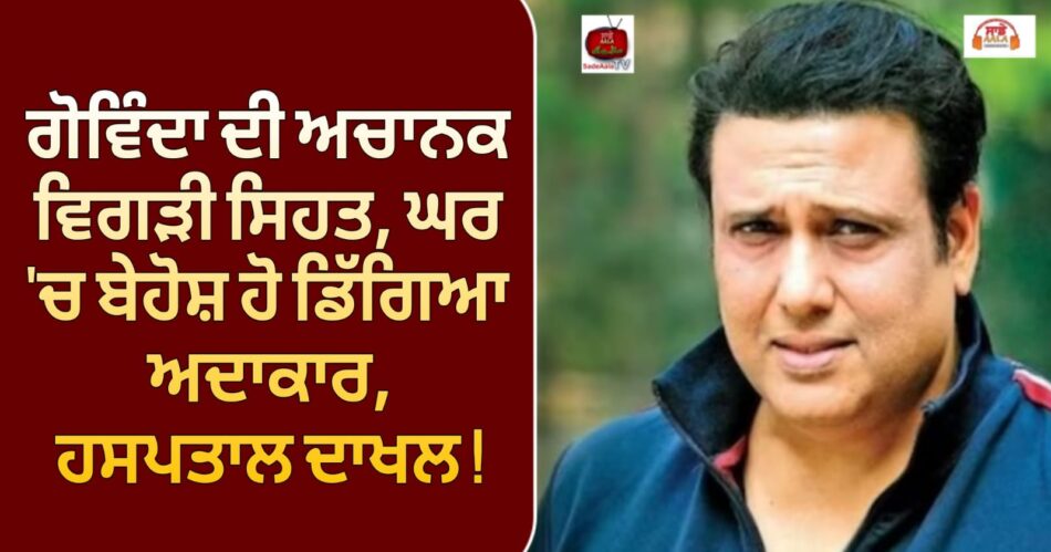 ਬਾਲੀਵੁੱਡ ਅਦਾਕਾਰ ਅਤੇ ਸਾਬਕਾ ਸੰਸਦ ਮੈਂਬਰ ਗੋਵਿੰਦਾ ਦੀ ਸਿਹਤ ਮੰਗਲਵਾਰ ਰਾਤ 8 ਵਜੇ ਅਚਾਨਕ ਵਿਗੜ ਗਈ। ਗੋਵਿੰਦਾ ਨੂੰ ਉਪਨਗਰੀਏ ਜੁਹੂ ਦੇ ਕ੍ਰਿਟੀਕਲ ਕੇਅਰ ਹਸਪਤਾਲ ਵਿੱਚ ਦਾਖਲ ਕਰਵਾਇਆ ਗਿਆ ਸੀ। ਉਨ੍ਹਾਂ ਦੇ ਦੋਸਤ ਅਤੇ ਕਾਨੂੰਨੀ ਸਲਾਹਕਾਰ ਲਲਿਤ ਬਿੰਦਲ ਨੇ ਮੰਗਲਵਾਰ ਰਾਤ ਨੂੰ ਇਹ ਜਾਣਕਾਰੀ ਦਿੱਤੀ। ਹਾਲਾਂਕਿ, ਗੋਵਿੰਦਾ ਦੀ ਹਾਲਤ ਹੁਣ ਸਥਿਰ ਹੈ ਅਤੇ ਉਹ ਆਰਾਮ ਕਰ ਰਹੇ ਹਨ। 61 ਸਾਲਾ ਅਦਾਕਾਰ ਨੂੰ ਆਪਣੇ ਘਰ ਵਿੱਚ ਬੇਹੋਸ਼ ਹੋਣ ਦੀ ਰਿਪੋਰਟ ਤੋਂ ਬਾਅਦ ਹਸਪਤਾਲ ਲਿਜਾਇਆ ਗਿਆ। ਗੋਵਿੰਦਾ ਨੂੰ ਅਚਾਨਕ ਬੇਹੋਸ਼ ਹੋਣ ਤੋਂ ਬਾਅਦ ਕ੍ਰਿਟੀਕਲ ਕੇਅਰ ਹਸਪਤਾਲ ਲਿਜਾਇਆ ਗਿਆ। ਉਹ ਇਸ ਸਮੇਂ ਨਿਗਰਾਨੀ ਹੇਠ ਹਨ। ਉਨ੍ਹਾਂ ਕਿਹਾ ਕਿ ਅਦਾਕਾਰ ਦੇ ਮਹੱਤਵਪੂਰਨ ਮਾਪਦੰਡਾਂ ‘ਤੇ ਨੇੜਿਓਂ ਨਜ਼ਰ ਰੱਖੀ ਜਾ ਰਹੀ ਹੈ ਅਤੇ ਡਾਕਟਰ ਜ਼ਰੂਰੀ ਟੈਸਟ ਕਰਵਾ ਰਹੇ ਹਨ।