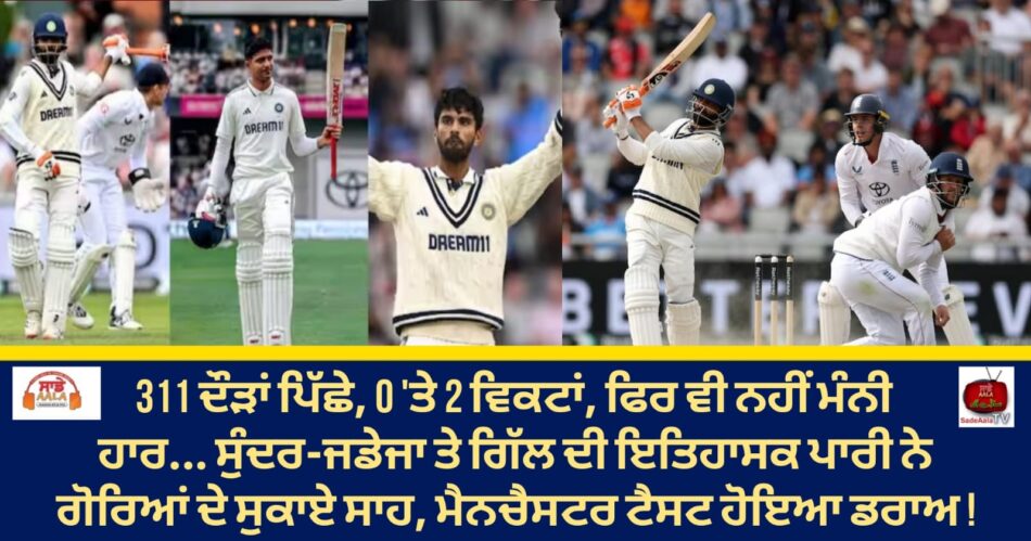 ਭਾਰਤ ਅਤੇ ਇੰਗਲੈਂਡ ਵਿਚਾਲੇ ਮੈਨਚੈਸਟਰ ਵਿੱਚ ਖੇਡਿਆ ਗਿਆ ਚੌਥਾ ਟੈਸਟ ਮੈਚ ਡਰਾਅ ਨਾਲ ਖਤਮ ਹੋਇਆ। ਪਰ ਇਹ ਮੈਚ ਭਾਰਤ ਲਈ ਕਈ ਤਰੀਕਿਆਂ ਨਾਲ ਇਤਿਹਾਸਕ ਸੀ। ਪਹਿਲੀ ਪਾਰੀ ਵਿੱਚ 669 ਦੌੜਾਂ ਬਣਾਉਣ ਤੋਂ ਬਾਅਦ ਇੰਗਲੈਂਡ ਕੋਲ ਭਾਰਤ ਦੇ ਸਾਹਮਣੇ 311 ਦੌੜਾਂ ਦੀ ਲੀਡ ਸੀ। ਜਿਸ ਦੇ ਜਵਾਬ ਵਿੱਚ ਭਾਰਤੀ ਟੀਮ ਨੂੰ ਪਹਿਲੇ ਹੀ ਓਵਰ ਵਿੱਚ ਦੋ ਝਟਕੇ ਲੱਗੇ। ਅਜਿਹੀ ਸਥਿਤੀ ਵਿੱਚ, ਭਾਰਤ ਨੂੰ ਪਾਰੀ ਹਾਰਨ ਦਾ ਖ਼ਤਰਾ ਸੀ। ਪਰ ਕੇਐਲ ਰਾਹੁਲ ਅਤੇ ਗਿੱਲ ਵਿਚਕਾਰ 188 ਦੌੜਾਂ ਦੀ ਸਾਂਝੇਦਾਰੀ ਅਤੇ ਫਿਰ ਜਡੇਜਾ ਅਤੇ ਸੁੰਦਰ ਦੀ ਨਿਡਰ ਅਤੇ ਹਮਲਾਵਰ ਪਾਰੀ ਨੇ ਇੰਗਲੈਂਡ ਦੇ ਸਾਹ ਸੁਕਾ ਦਿੱਤੇ। ਜਡੇਜਾ ਅਤੇ ਸੁੰਦਰ ਦੋਵਾਂ ਨੇ ਅਜੇਤੂ ਸੈਂਕੜੇ ਲਗਾਏ। ਦੋਵਾਂ ਵਿਚਕਾਰ 203 ਦੌੜਾਂ ਦੀ ਸਾਂਝੇਦਾਰੀ ਹੋਈ। ਪੰਜਵੇਂ ਅਤੇ ਆਖਰੀ ਦਿਨ ਦੇ ਖੇਡ ਦੇ ਅੰਤ ਤੱਕ, ਭਾਰਤ ਨੇ 4 ਵਿਕਟਾਂ ਗੁਆਉਣ ਤੋਂ ਬਾਅਦ 425 ਦੌੜਾਂ ਬਣਾ ਲਈਆਂ ਸਨ। ਰਵਿੰਦਰ ਜਡੇਜਾ ਨੇ ਅਜੇਤੂ 107 ਦੌੜਾਂ ਬਣਾਈਆਂ, ਜਦੋਂ ਕਿ ਸੁੰਦਰ ਨੇ ਅਜੇਤੂ 101 ਦੌੜਾਂ ਬਣਾਈਆਂ।