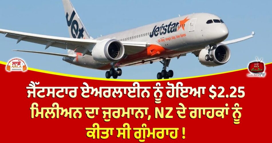 ਜੈੱਟਸਟਾਰ ਏਅਰਲਾਈਨ ਨੂੰ ਗਾਹਕਾਂ ਨੂੰ ਗੁੰਮਰਾਹ ਕਰਨ ਦੇ ਮਾਮਲੇ ‘ਚ $2.25 ਮਿਲੀਅਨ ਦਾ ਜੁਰਮਾਨਾ ਲਗਾਇਆ ਗਿਆ ਹੈ। ਜੈੱਟਸਟਾਰ ਨਿਊਜ਼ੀਲੈਂਡ ਨੂੰ ਉਡਾਣਾਂ ਵਿੱਚ ਦੇਰੀ ਜਾਂ ਰੱਦ ਹੋਣ ‘ਤੇ ਗਾਹਕਾਂ ਨੂੰ ਉਨ੍ਹਾਂ ਦੇ ਮੁਆਵਜ਼ੇ ਦੇ ਅਧਿਕਾਰਾਂ ਬਾਰੇ ਗੁੰਮਰਾਹ ਕਰਨ ਲਈ ਇੱਕ “ਮਿਸਾਲ-ਪੱਧਰੀ ਮਾਮਲੇ” ਵਿੱਚ $2.25 ਮਿਲੀਅਨ ਦਾ ਜੁਰਮਾਨਾ ਲਗਾਇਆ ਗਿਆ ਹੈ। ਸੋਮਵਾਰ ਸਵੇਰੇ ਆਕਲੈਂਡ ਜ਼ਿਲ੍ਹਾ ਅਦਾਲਤ ਵਿੱਚ ਜੱਜ ਬਰੂਕ ਗਿਬਸਨ ਦੁਆਰਾ ਰਾਖਵਾਂ ਫੈਸਲਾ ਸੁਣਾਇਆ ਗਿਆ, ਜਿਸਨੂੰ ਫੇਅਰ ਟ੍ਰੇਡਿੰਗ ਐਕਟ ਦੇ ਤਹਿਤ “ਹੁਣ ਤੱਕ ਲਗਾਏ ਗਏ ਸਭ ਤੋਂ ਵੱਡੇ ਜੁਰਮਾਨਿਆਂ ਵਿੱਚੋਂ ਇੱਕ” ਦੱਸਿਆ ਗਿਆ ਹੈ।