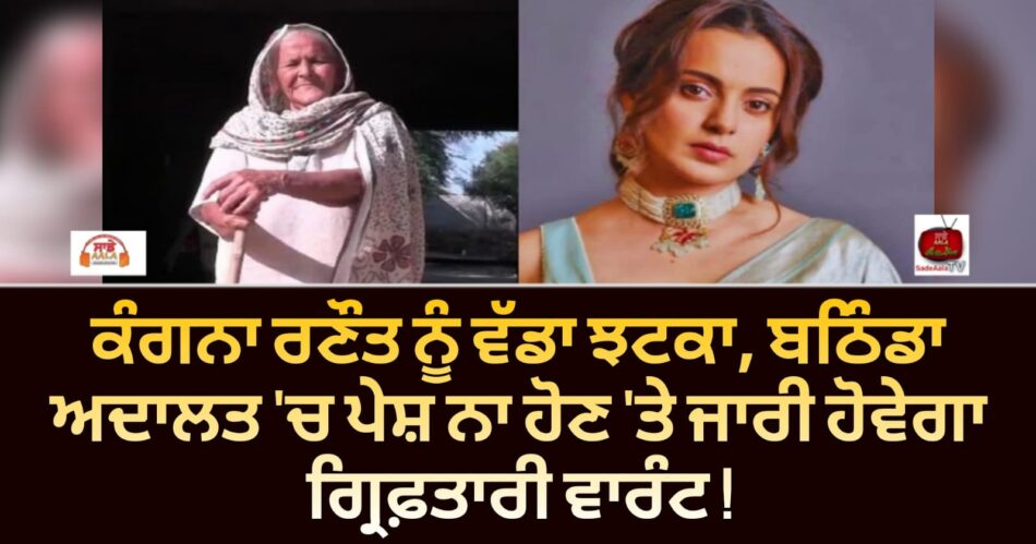 ਕੰਗਨਾ ਰਣੌਤ ਨੂੰ ਵੱਡਾ ਝਟਕਾ, ਬਠਿੰਡਾ ਅਦਾਲਤ ‘ਚ ਪੇਸ਼ ਨਾ ਹੋਣ ‘ਤੇ ਜਾਰੀ ਹੋਵੇਗਾ ਗ੍ਰਿਫ਼ਤਾਰੀ ਵਾਰੰਟ !