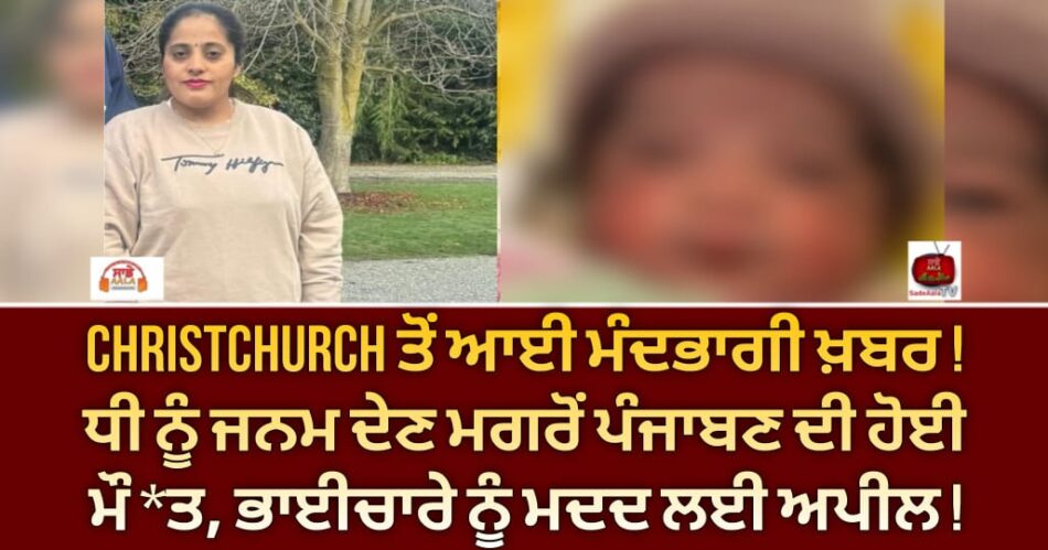 ਕ੍ਰਾਈਸਚਰਚ ਤੋਂ ਇੱਕ ਮੰਦਭਾਗੀ ਖ਼ਬਰ ਸਾਹਮਣੇ ਆਈ ਹੈ। ਦਰਅਸਲ ਇੱਥੇ ਡਿਲਿਵਰੀ ਦੌਰਾਨ ਇੱਕ ਨੌਜਵਾਨ ਮਾਂ ਅਚਾਨਕ ਮੌਤ ਹੋ ਗਈ। ਸਥਾਨਕ ਰਿਪੋਰਟਾਂ ਦੇ ਅਨੁਸਾਰ ਮਹਿਲਾ ਨੇ ਧੀ ਨੂੰ ਜਨਮ ਦਿੱਤਾ, ਪਰ ਜਨਮ ਸਮੇਂ ਮਾਂ ਨੂੰ ਦਿਲ ਦਾ ਦੌਰਾ ਪੈ ਗਿਆ ਜਿਸ ਕਾਰਨ ਉਸਨੂੰ ਬਚਾਇਆ ਨਾ ਜਾ ਸਕਿਆ। ਨਵਜੰਮੀ ਬੱਚੀ ਨੇ ਦੁਨੀਆ ‘ਤੇ ਆਉਂਦਿਆਂ ਹੀ ਆਪਣੀ ਮਾਂ ਨੂੰ ਗੁਆ ਦਿੱਤਾ ਹੈ। ਇਸ ਘਟਨਾ ਮਗਰੋਂ ਕ੍ਰਾਈਸਚਰਚ ਅਤੇ ਭਾਰਤ ਦੋਵੇਂ ਥਾਵਾਂ ‘ਤੇ ਪਰਿਵਾਰਾਂ ‘ਚ ਸੋਗ ਦਾ ਮਾਹੌਲ ਹੈ। ਇਸ ਤੋਂ ਇਲਾਵਾ ਪਰਿਵਾਰ ਨੂੰ ਮ੍ਰਿਤਕ ਦੀ ਦੇਹ ਨੂੰ ਭਾਰਤ ਭੇਜਣ ਅਤੇ ਧਾਰਮਿਕ ਰਸਮਾਂ ਲਈ ਵੱਡੇ ਖਰਚਿਆਂ ਦਾ ਸਾਹਮਣਾ ਕਰਨਾ ਪੈ ਰਿਹਾ ਹੈ। ਜਿਸ ਕਾਰਨ ਪਰਿਵਾਰ ਦੀ ਮਦਦ ਲਈ ਫੰਡ ਇਕੱਠਾ ਕੀਤਾ ਜਾ ਰਿਹਾ ਹੈ। ਤੁਸੀਂ ਵੀ ਅੱਗੇ ਦਿੱਤੇ ਲਿੰਕ ਰਾਹੀਂ ਪਰਿਵਾਰ ਦੀ ਮਦਦ ਕਰ ਸਕਦੇ ਹੋ।