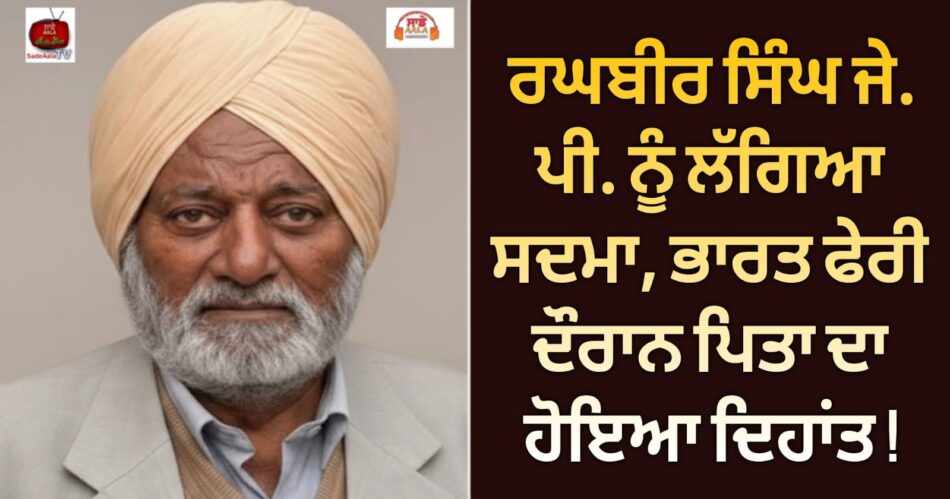 ਰਘਬੀਰ ਸਿੰਘ ਜੇ. ਪੀ ਨੂੰ ਗਹਿਰਾ ਸਦਮਾ ਲੱਗਿਆ ਹੈ। ਦਰਅਸਲ ਭਾਰਤ ਫੇਰੀ ਦੌਰਾਨ ਉਨ੍ਹਾਂ ਦੇ ਪਿਤਾ ਸ. ਮਲਕੀਤ ਸਿੰਘ ਦਾ ਦਿਹਾਂਤ ਹੋ ਗਿਆ ਹੈ। ਜਾਣਕਾਰੀ ਮੁਤਾਬਿਕ ਮਲਕੀਤ ਸਿੰਘ ਨਿਵਾਸੀ ਪਿੰਡ ਹੇੜੀਆਂ (ਜ਼ਿਲਾ ਸ਼ਹੀਦ ਭਗਤ ਸਿੰਘ ਨਗਰ, ਨਵਾਂ ਸ਼ਹਿਰ) ਬੀਤੇ ਦਿਨੀ ਪਰਿਵਾਰ ਨੂੰ ਵਿਛੋੜਾ ਦੇ ਗਏ ਹਨ। ਉਹ ਇਹਨੀਂ ਦਿਨੀਂ ਭਾਰਤ ਫੇਰੀ ‘ਤੇ ਸਨ। ਉਹ ਆਪਣੇ ਪਿੱਛੇ ਤਿੰਨ ਬੱਚਿਆਂ ਸ. ਰਘਵੀਰ ਸਿੰਘ, ਸਵ. ਕੁਲਵਿੰਦਰ ਸਿੰਘ ਕਿੰਦਾ ਅਤੇ ਅਮਰਜੀਤ ਕੌਰ (ਮੈਲਬਰਨ) ਦੇ ਪਿਤਾ ਸਨ। ਉਹ ਲੰਮੇ ਸਮੇਂ ਤੋਂ ਆਪਣੇ ਬੱਚਿਆਂ ਕੋਲ ਨਿਊਜ਼ੀਲੈਂਡ ਰਹਿੰਦੇ ਸਨ। ਪਰ ਪਿਛਲੇ ਦਿਨਾਂ ਦੌਰਾਨ ਭਾਰਤ ਫੇਰੀ ਵਿਚਕਾਰ ਬਿਮਾਰੀ ਤੋਂ ਬਾਅਦ ਇਸ ਫਾਨੀ ਸੰਸਾਰ ਨੂੰ ਅਲਵਿਦਾ ਕਹਿ ਗਏ। ਹਾਲ ਦੀ ਘੜੀ ਸ. ਰਘਬੀਰ ਸਿੰਘ ਜੇ.ਪੀ ਅਤੇ ਪਰਿਵਾਰ ਦੇ ਕਾਫੀ ਮੈਂਬਰ ਪੰਜਾਬ ਵਿੱਚ ਹੀ ਹਨ।