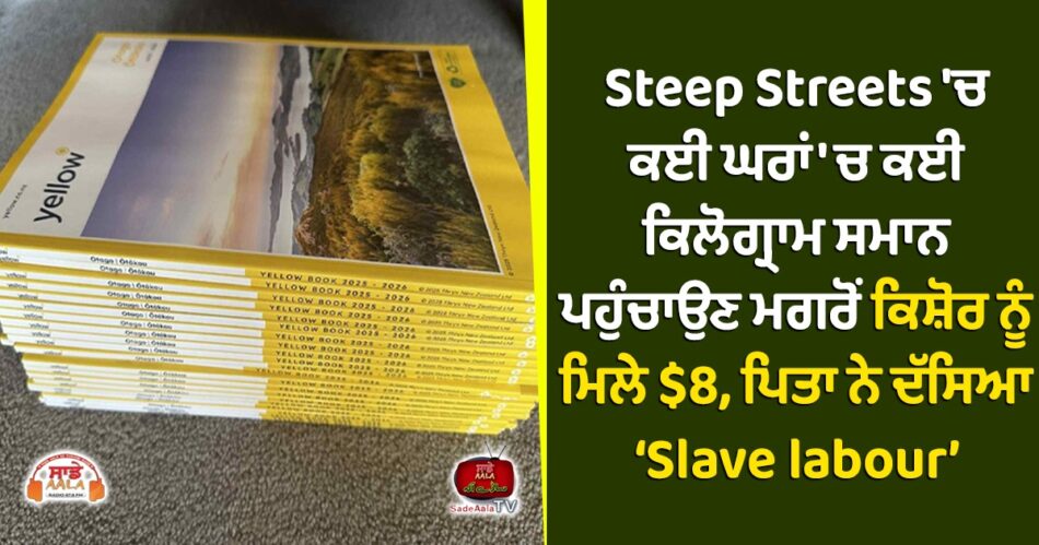 ਇੱਕ ਕਿਸ਼ੋਰ ਨੂੰ ਉਸਦੇ ਉਪਨਗਰ ਦੀਆਂ steep streets ਵਿੱਚ 42 ਕਿਲੋਗ੍ਰਾਮ ਤੋਂ ਵੱਧ ਫੋਨਬੁੱਕਾਂ ਪਹੁੰਚਾਉਣ ਲਈ $8 ਤੋਂ ਵੱਧ ਦਾ ਭੁਗਤਾਨ ਕੀਤਾ ਗਿਆ ਸੀ। ਮਾਮਲਾ ਡੁਨੇਡਿਨ ਸ਼ਹਿਰ ਤੋਂ ਸਾਹਮਣੇ ਆਇਆ ਹੈ। ਉਸ ਦੇ ਪਿਤਾ ਨੇ ਹੁਣ ਇਸ ਕੰਮ ਨੂੰ “ਗੁਲਾਮ ਮਜ਼ਦੂਰੀ” ਕਰਾਰ ਦਿੱਤਾ ਹੈ। ਦੱਸ ਦੇਈਏ ਕਿਸ਼ੋਰ The Star ਅਖ਼ਬਾਰ ਦੀ ਰੁਟੀਨ ਡਿਲਿਵਰੀ ਕਰਦਾ ਸੀ। Mainland Distribution ਵੱਲੋਂ ਇਸ ਵਾਰ ਉਸਨੂੰ Yellow Book ਫੋਨਬੁੱਕ ਵੀ ਵੰਡਣ ਲਈ ਦਿੱਤੇ ਗਏ। ਨੋਟ ਵਿੱਚ ਕਿਹਾ ਗਿਆ ਸੀ ਕਿ ਇਹ ਸਭ ਘਰਾਂ ਵਿੱਚ ਪਹੁੰਚਾਉਣੇ ਹਨ, ਪਰ ਵਾਧੂ ਭੁਗਤਾਨ ਬਾਰੇ ਕੁਝ ਪੱਕਾ ਨਹੀਂ ਸੀ।