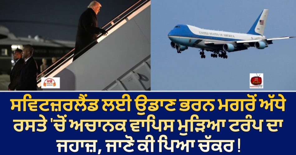 ਅਮਰੀਕੀ ਰਾਸ਼ਟਰਪਤੀ ਡੋਨਾਲਡ ਟਰੰਪ ਵਿਸ਼ਵ ਆਰਥਿਕ ਫੋਰਮ ਵਿੱਚ ਸ਼ਾਮਲ ਹੋਣ ਲਈ ਸਵਿਟਜ਼ਰਲੈਂਡ ਦੇ ਦਾਵੋਸ ਜਾ ਰਹੇ ਸਨ। ਹਾਲਾਂਕਿ, ਉਡਾਣ ਭਰਨ ਤੋਂ ਥੋੜ੍ਹੀ ਦੇਰ ਬਾਅਦ, ਉਨ੍ਹਾਂ ਦੇ ਵਿਸ਼ੇਸ਼ ਜਹਾਜ਼, ਏਅਰ ਫੋਰਸ ਵਨ ਵਿੱਚ ਬਿਜਲੀ ਦੀ ਖਰਾਬੀ ਆ ਗਈ। ਵ੍ਹਾਈਟ ਹਾਊਸ ਦੇ ਅਨੁਸਾਰ, ਸੁਰੱਖਿਆ ਕਾਰਨਾਂ ਕਰਕੇ, ਜਹਾਜ਼ ਨੂੰ ਤੁਰੰਤ ਮੈਰੀਲੈਂਡ ਦੇ ਜੁਆਇੰਟ ਬੇਸ ਐਂਡਰਿਊਜ਼ ਵਾਪਸ ਭੇਜ ਦਿੱਤਾ ਗਿਆ ਤਾਂ ਜੋ ਰਾਸ਼ਟਰਪਤੀ ਬਿਨਾਂ ਕਿਸੇ ਜੋਖਮ ਦੇ ਦੂਜੇ ਜਹਾਜ਼ ਵਿੱਚ ਯਾਤਰਾ ਕਰ ਸਕਣ। ਵ੍ਹਾਈਟ ਹਾਊਸ ਦੀ ਪ੍ਰੈਸ ਸਕੱਤਰ ਕੈਰੋਲੀਨ ਲੇਵਿਟ ਨੇ ਸਪੱਸ਼ਟ ਕੀਤਾ ਕਿ ਰਾਸ਼ਟਰਪਤੀ ਟਰੰਪ ਦੀ ਦਾਵੋਸ ਯਾਤਰਾ ਰੱਦ ਨਹੀਂ ਕੀਤੀ ਗਈ ਹੈ। ਉਨ੍ਹਾਂ ਨੇ ਕਿਹਾ ਕਿ ਜਹਾਜ਼ ਨੂੰ ਸਿਰਫ ਤਕਨੀਕੀ ਸਮੱਸਿਆ ਕਾਰਨ ਬਦਲਿਆ ਗਿਆ ਸੀ, ਅਤੇ ਰਾਸ਼ਟਰਪਤੀ ਨਵੇਂ ਜਹਾਜ਼ ‘ਤੇ ਸਵਿਟਜ਼ਰਲੈਂਡ ਜਾਣਗੇ।