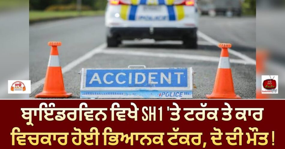 ਅੱਜ ਸਵੇਰੇ ਨੌਰਥਲੈਂਡ ਵਿੱਚ ਇੱਕ ਕਾਰ ਅਤੇ ਟਰੱਕ ਦੀ ਟੱਕਰ ਹੋਣ ਕਾਰਨ ਦੋ ਲੋਕਾਂ ਦੀ ਮੌਤ ਹੋ ਗਈ ਹੈ। ਐਮਰਜੈਂਸੀ ਸੇਵਾਵਾਂ ਨੂੰ ਸਵੇਰੇ 3 ਵਜੇ ਤੋਂ ਬਾਅਦ ਬ੍ਰਾਇੰਡਰਵਿਨ ਵਿਖੇ ਸਟੇਟ ਹਾਈਵੇਅ 1 ‘ਤੇ ਘਟਨਾ ਸਥਾਨ ‘ਤੇ ਬੁਲਾਇਆ ਗਿਆ ਸੀ। ਇੱਕ ਪੁਲਿਸ ਬੁਲਾਰੇ ਨੇ ਕਿਹਾ ਕਿ “ਦੁੱਖ ਦੀ ਗੱਲ ਹੈ ਕਿ ਕਾਰ ਵਿੱਚ ਸਵਾਰ ਦੋ ਸਵਾਰਾਂ ਨੂੰ ਮੌਕੇ ‘ਤੇ ਹੀ ਮ੍ਰਿਤਕ ਐਲਾਨ ਦਿੱਤਾ ਗਿਆ ਸੀ।” ਇਸ ਦੌਰਾਨ ਟਰੱਕ ਡਰਾਈਵਰ ਨੂੰ ਮਾਮੂਲੀ ਸੱਟਾਂ ਲੱਗੀਆਂ, ਅਤੇ ਸੇਂਟ ਜੌਨ ਦੁਆਰਾ ਮੌਕੇ ‘ਤੇ ਹੀ ਉਸਦਾ ਮੁਲਾਂਕਣ ਅਤੇ ਇਲਾਜ ਕੀਤਾ ਗਿਆ। ਹਾਦਸੇ ਦੇ ਕਾਰਨ ਦਾ ਪਤਾ ਲਗਾਉਣ ਲਈ ਜਾਂਚ ਕੀਤੀ ਜਾ ਰਹੀ ਹੈ।