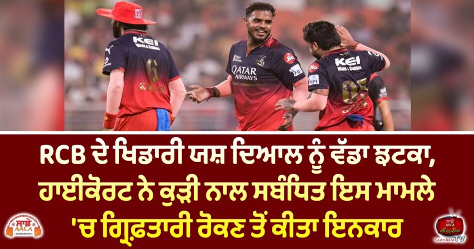 ਰਾਇਲ ਚੈਲੇਂਜਰਜ਼ ਬੰਗਲੌਰ (ਆਰਸੀਬੀ) ਦੇ ਤੇਜ਼ ਗੇਂਦਬਾਜ਼ ਅਤੇ ਆਈਪੀਐਲ 2025 ਦੇ ਚੈਂਪੀਅਨ ਯਸ਼ ਦਿਆਲ ਇੱਕ ਵਾਰ ਫਿਰ ਗੰਭੀਰ ਕਾਨੂੰਨੀ ਵਿਵਾਦ ਵਿੱਚ ਫਸ ਗਏ ਹਨ। ਜੈਪੁਰ ਵਿੱਚ ਇੱਕ ਨਾਬਾਲਗ ਲੜਕੀ ਵੱਲੋਂ ਬਲਾਤਕਾਰ ਦਾ ਦੋਸ਼ ਲਗਾਏ ਜਾਣ ਤੋਂ ਬਾਅਦ ਰਾਜਸਥਾਨ ਹਾਈ ਕੋਰਟ ਨੇ ਉਸਦੀ ਗ੍ਰਿਫ਼ਤਾਰੀ ‘ਤੇ ਰੋਕ ਲਗਾਉਣ ਤੋਂ ਇਨਕਾਰ ਕਰ ਦਿੱਤਾ ਹੈ। ਜੈਪੁਰ ਹਾਈ ਕੋਰਟ ਨੇ ਸਪੱਸ਼ਟ ਕੀਤਾ ਕਿ ਪੀੜਤਾ ਨਾਬਾਲਗ ਹੈ, ਇਸ ਲਈ ਗ੍ਰਿਫ਼ਤਾਰੀ ਅਤੇ ਪੁਲਿਸ ਕਾਰਵਾਈ ਨੂੰ ਰੋਕਿਆ ਨਹੀਂ ਜਾ ਸਕਦਾ। ਅਦਾਲਤ ਨੇ ਇਸ ਮਾਮਲੇ ਵਿੱਚ ਕੇਸ ਡਾਇਰੀ ਤਲਬ ਕੀਤੀ ਹੈ ਅਤੇ ਅਗਲੀ ਸੁਣਵਾਈ 22 ਅਗਸਤ, 2025 ਨੂੰ ਤੈਅ ਕੀਤੀ ਹੈ। ਇਹ ਮਾਮਲਾ ਯਸ਼ ਦਿਆਲ ਲਈ ਨਵੀਆਂ ਮੁਸੀਬਤਾਂ ਪੈਦਾ ਕਰ ਰਿਹਾ ਹੈ, ਖਾਸ ਕਰਕੇ ਜਦੋਂ ਕੁਝ ਹਫ਼ਤੇ ਪਹਿਲਾਂ ਗਾਜ਼ੀਆਬਾਦ ਵਿੱਚ ਇੱਕ ਹੋਰ ਔਰਤ ਨੇ ਵੀ ਉਸ ‘ਤੇ ਬਲਾਤਕਾਰ ਦਾ ਦੋਸ਼ ਲਗਾਇਆ ਸੀ।
